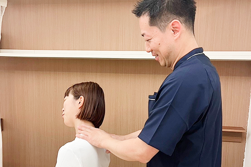 当院では、筋肉の緊張や身体の使い方を丁寧に確認し、マッスルセラピー(筋肉を整える施術)によって全身のバランスを調整します。硬くなった筋肉をゆるめ、弱くなった筋肉が働きやすい状態に整えることで、関節の動きもスムーズになり、自然と正しい姿勢へ戻りやすい身体へ導いていきます。その場だけ整えるのではなく、良い姿勢を維持できる身体づくりを目指します。